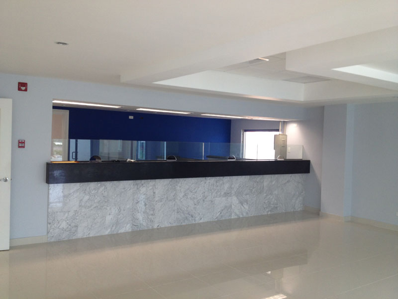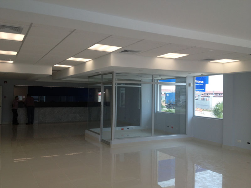 Proyecto llave en mano para sucursal bancaria. Consiste en zona de atención al cliente y oficinas